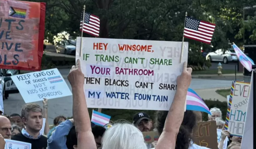 Spanberger supporter holds up a sign at a Winsome Sears protest in Arlington, VA on August 21, 2025.